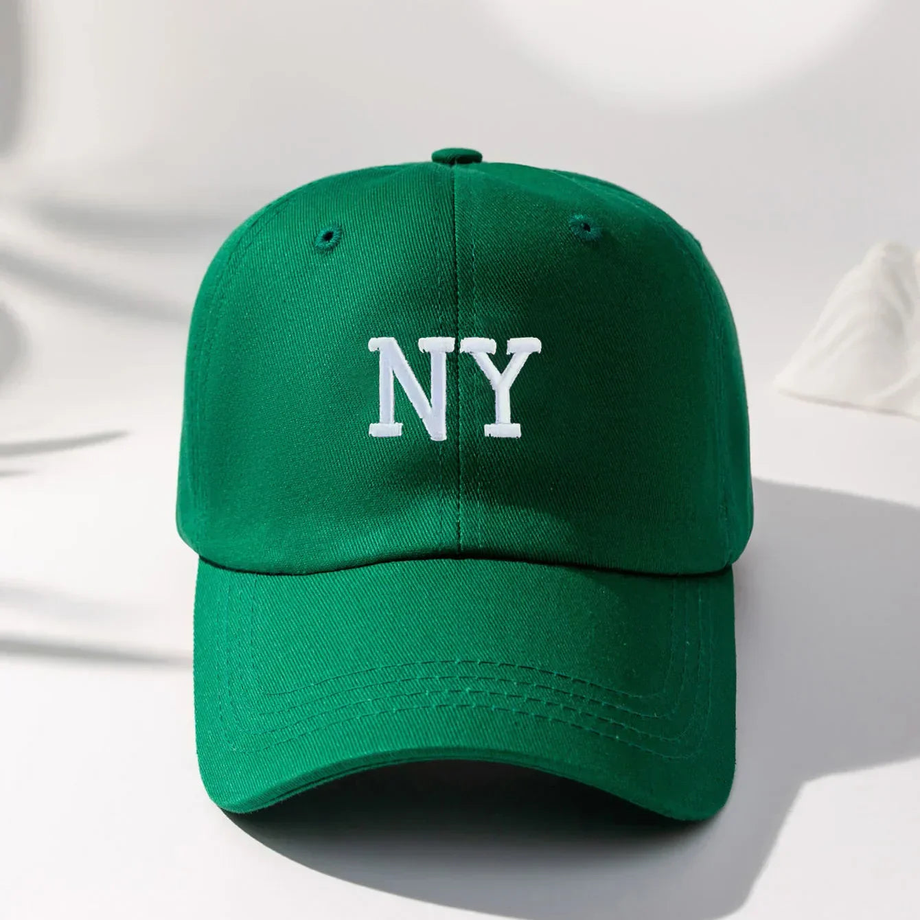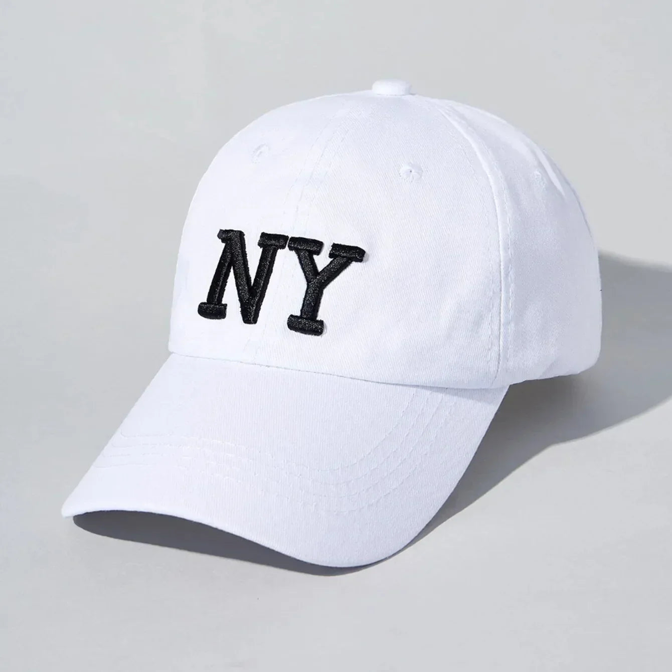 Trendy unisex baseball cap with solid colors and embroidered NY design. Lightweight and adjustable for a perfect fit.